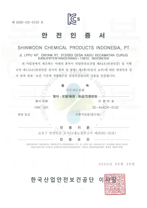 블랙야크 안전화 YAK-501 인증서