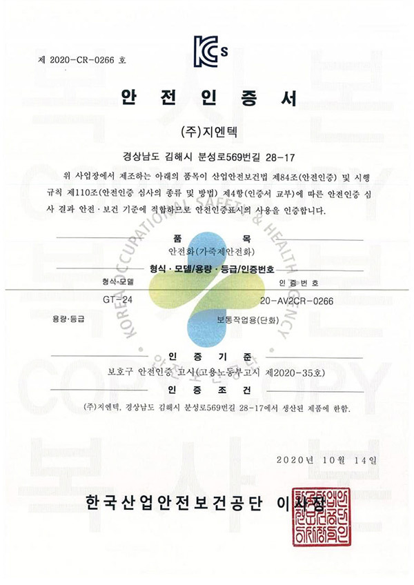 K2 안전벨트 KB-9503, KB-9503(Y) 인증서