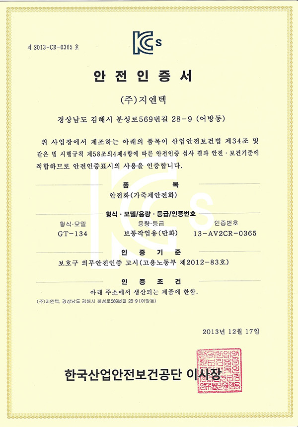 네파 안전화 GT-134 인증서