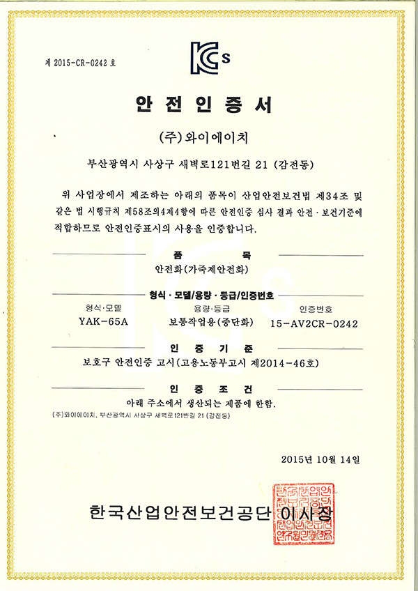 블랙야크 안전화 YAK-66, YAK-66N 인증서