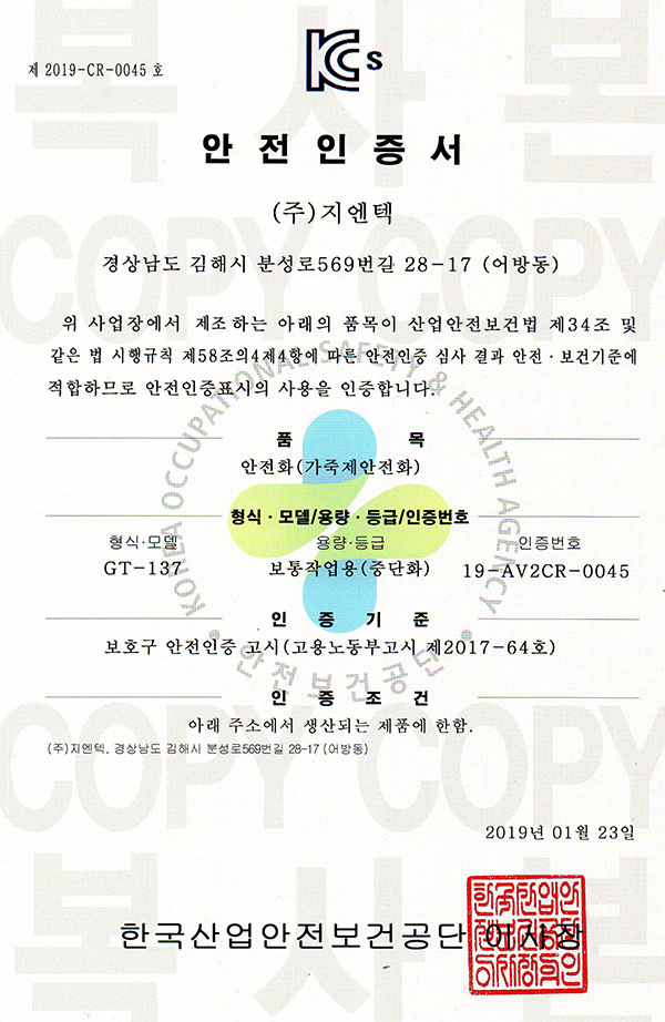 네파 안전화 GT-137 인증서
