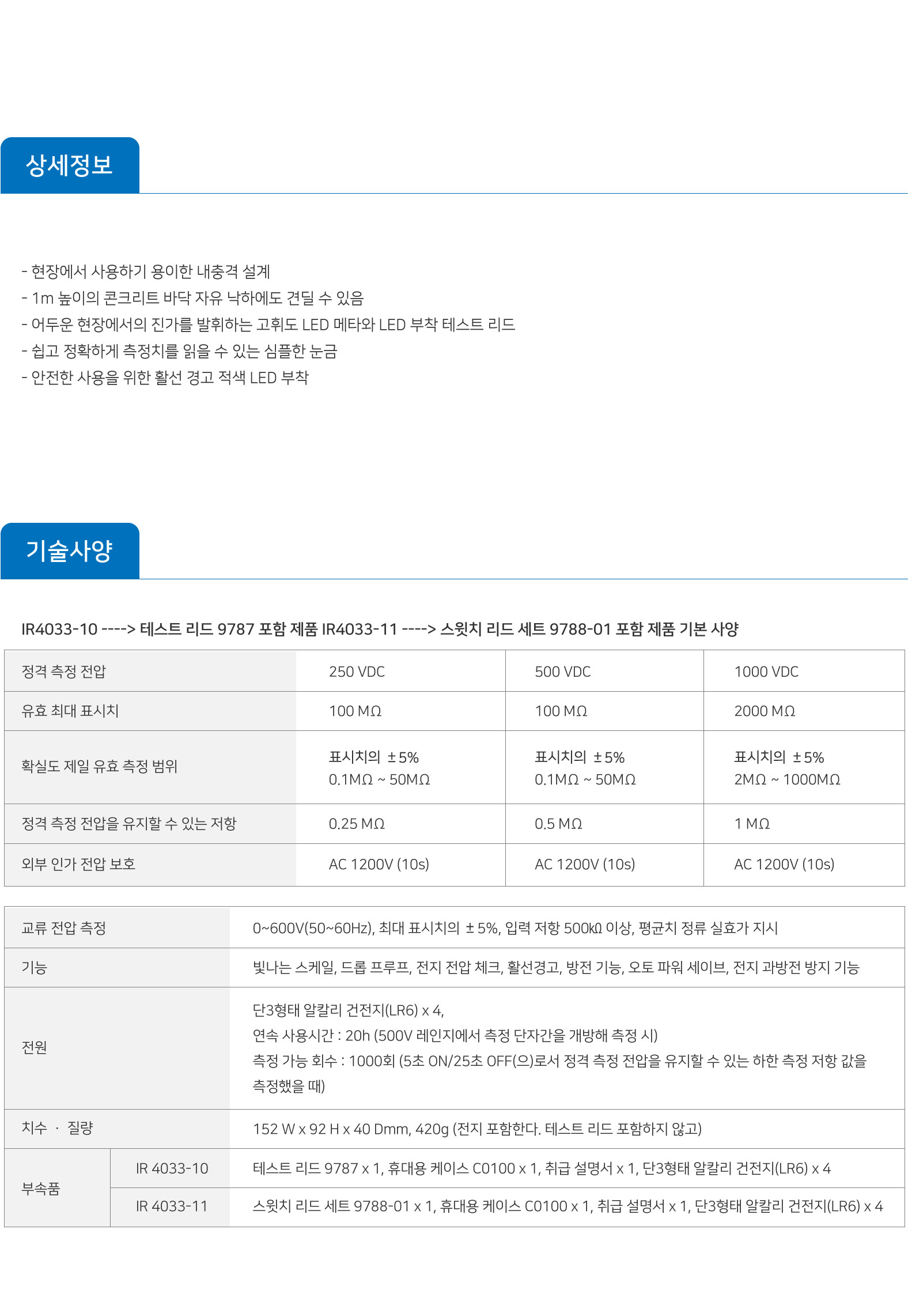• 아날로그 메가옴 하이테스터 IR4033-10 / IR4033-11