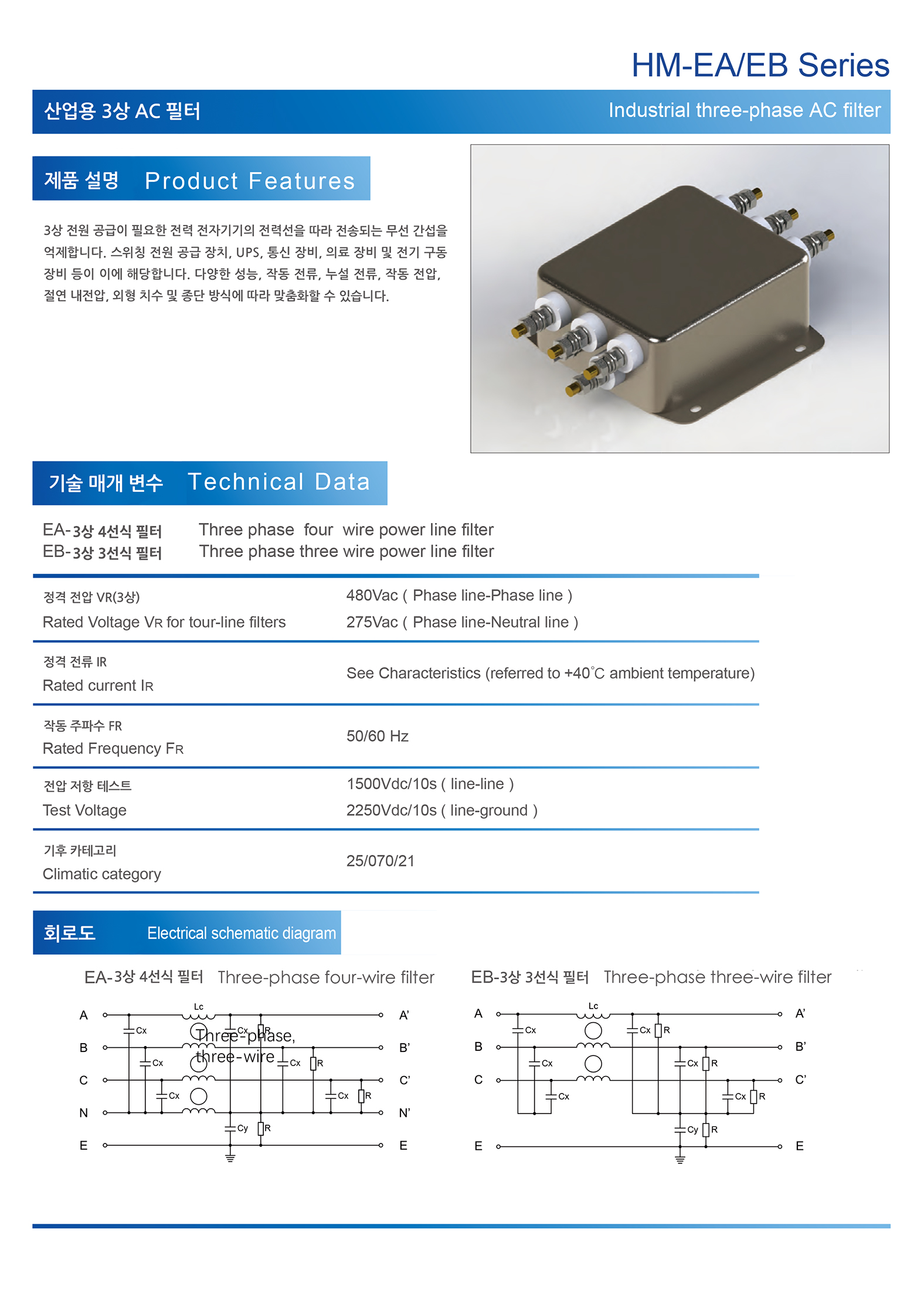• 3상 교류 EMI 전원 노이즈 필터(AC Noise Power Line Filter)