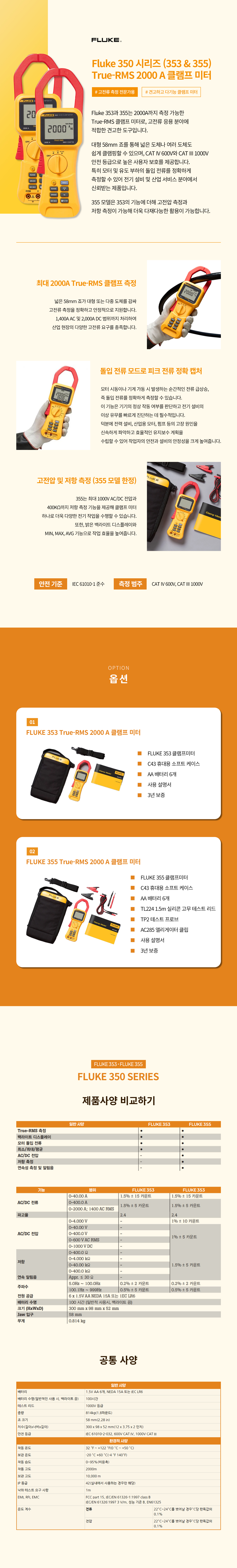 • FLUKE 350 시리즈 AC/DC True-RMS 클램프 미터