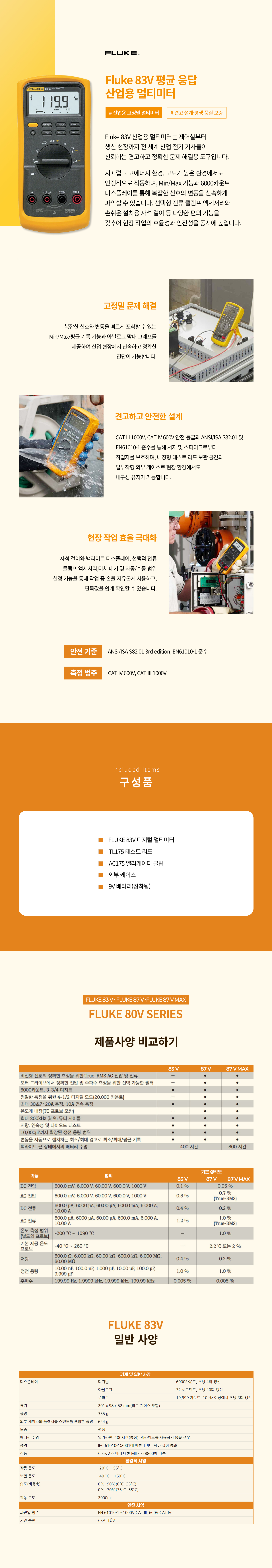 • FLUKE 83V, 87V 및 87V MAX 디지털 멀티미터