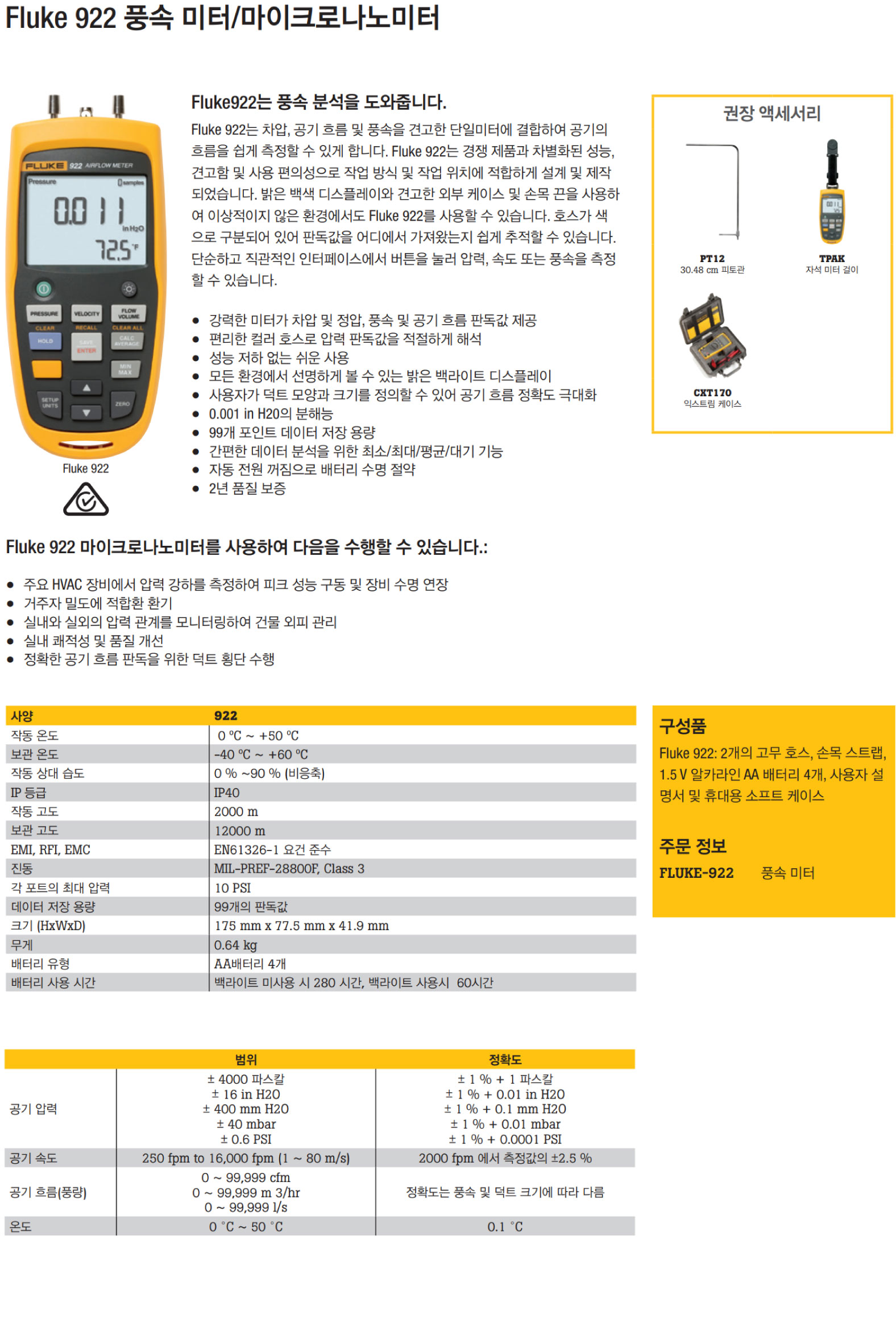 - FLUKE 922 풍속 미터/마이크로나노미터/KIT -